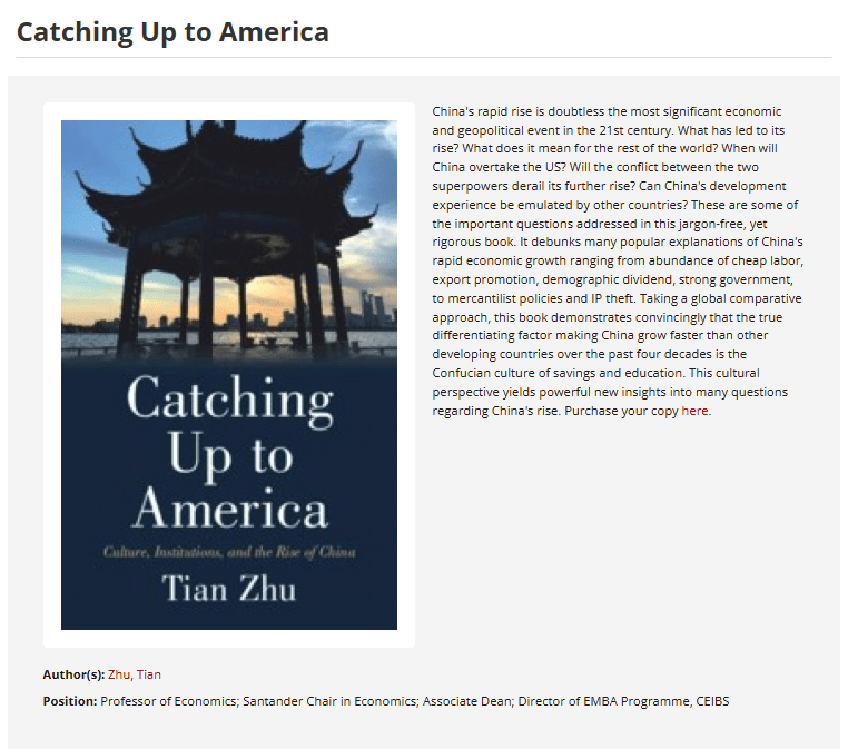 On the surface, Catching up to America argued that the secret to China’s growth was Chinese culture. This idea, however, was neither new nor particularly in vogue at the time. Hence, when it came to picking an angle to promote the book, I decided to focus not on what it said, but what it didn’t (or couldn’t) say.