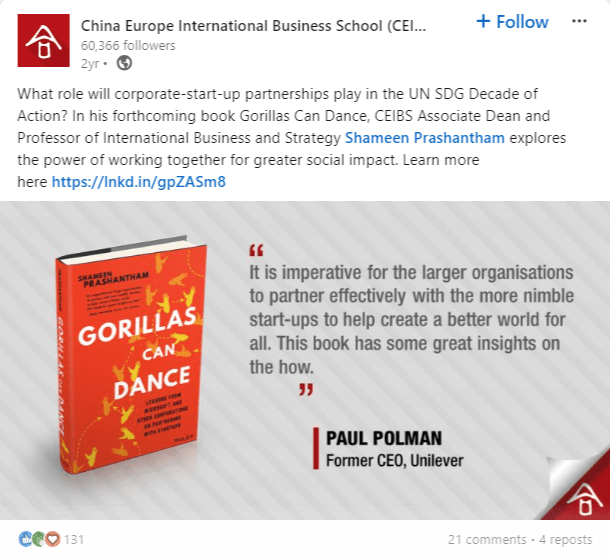 We also gathered testimonials from high-profile executives, academics and other VIPs (including the one below from former Unilever Global CEO Paul Polman) which we used to promote the book on our social media channels.