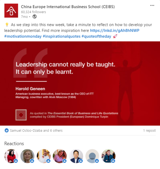 Finally, we seeded the book with influencers in the CEIBS community by sharing copies with groups such as the school’s alumni reading club.